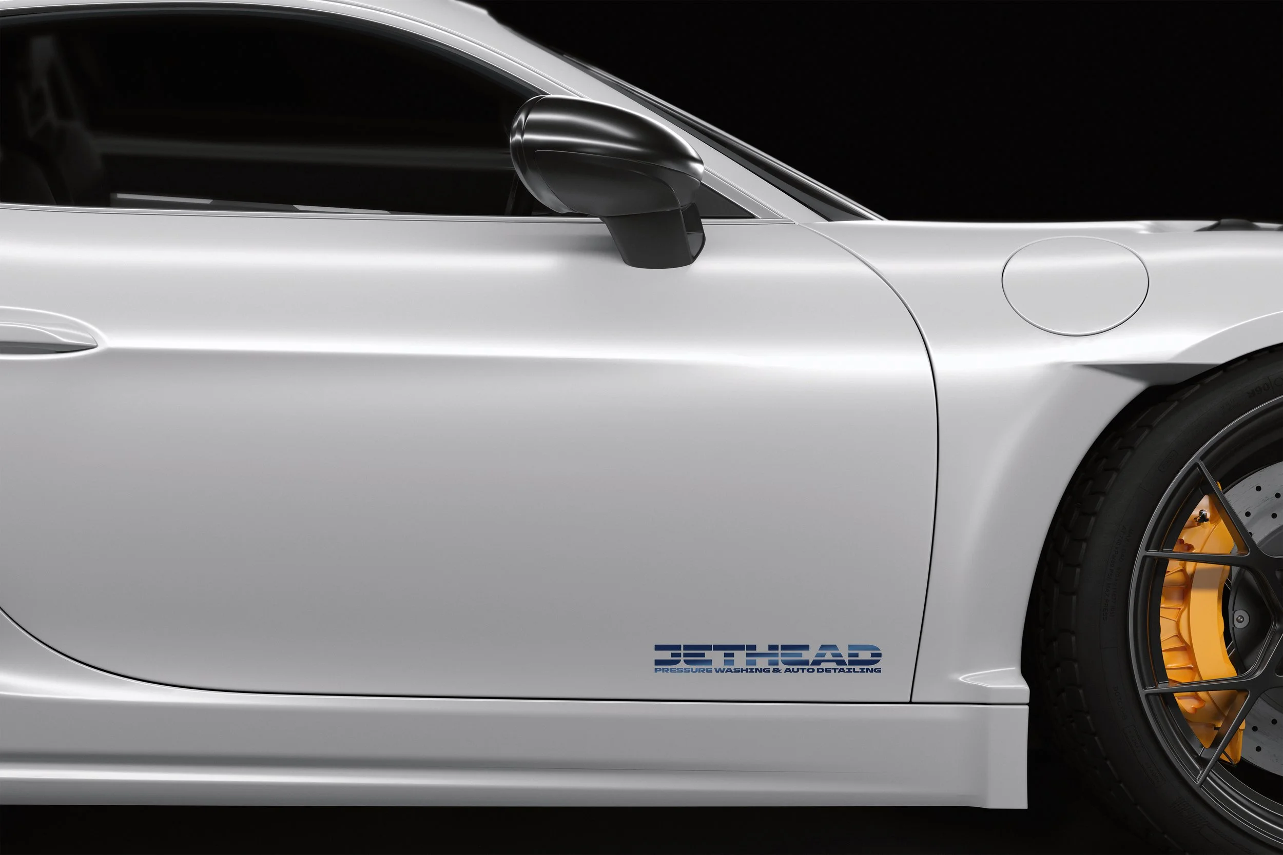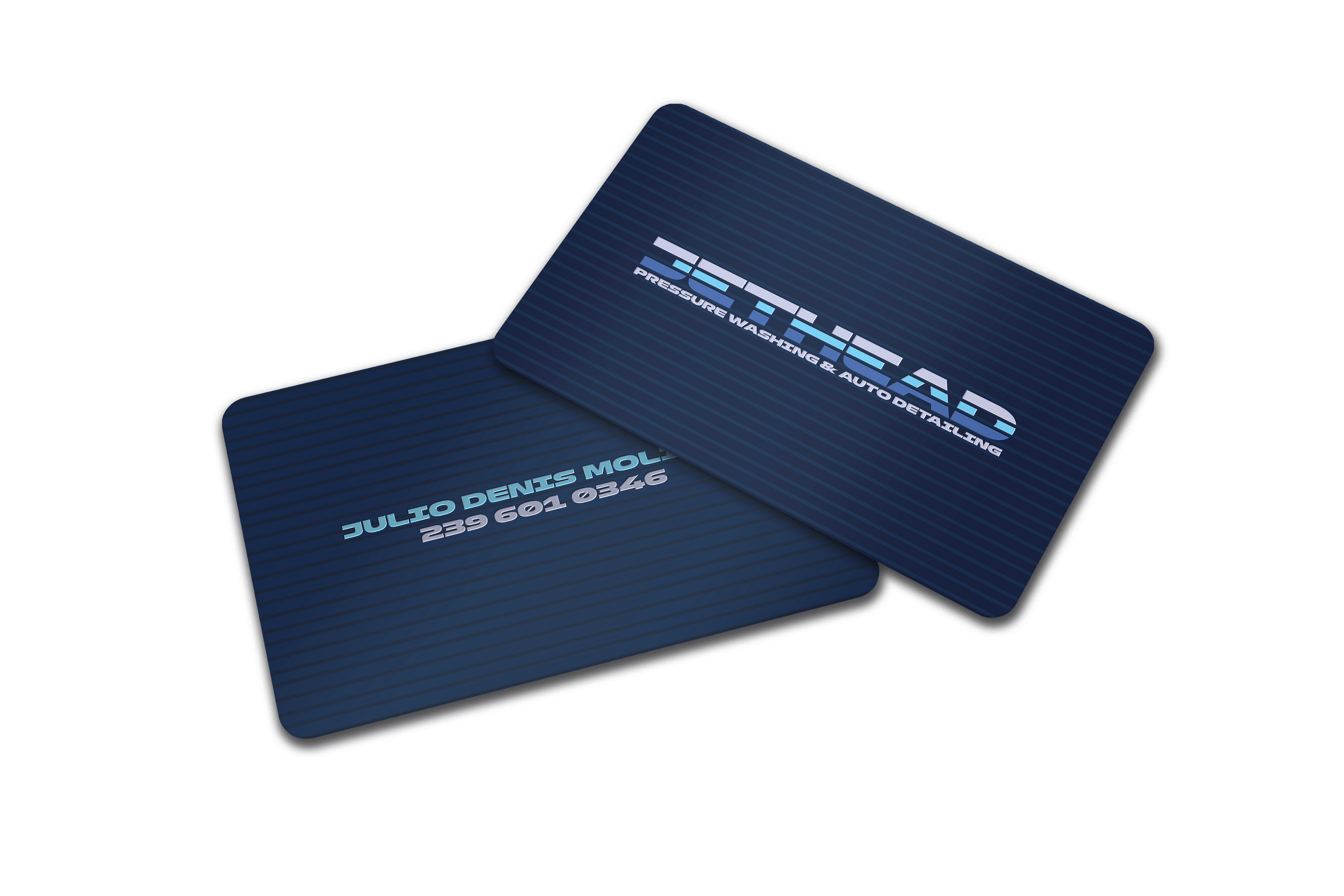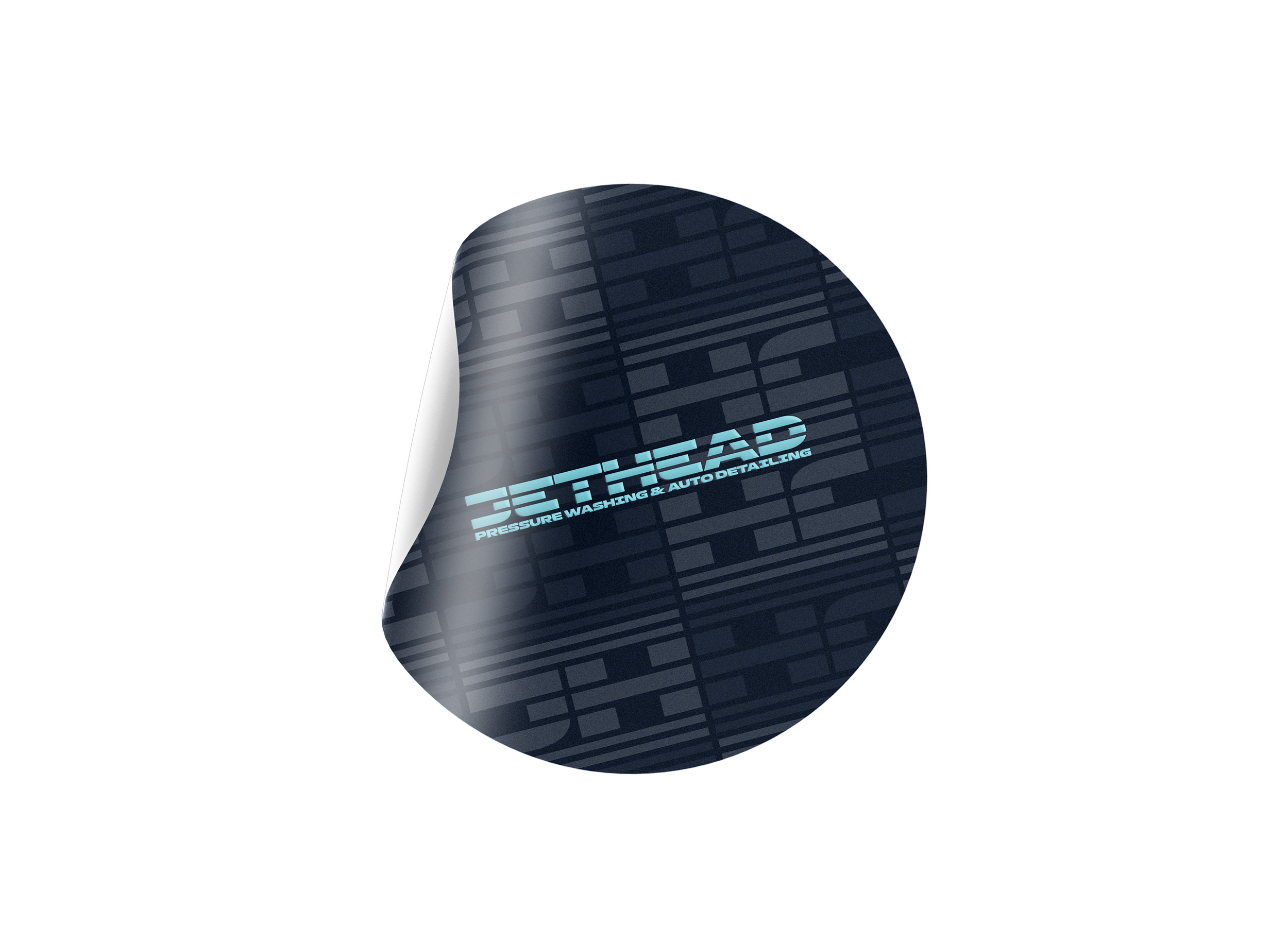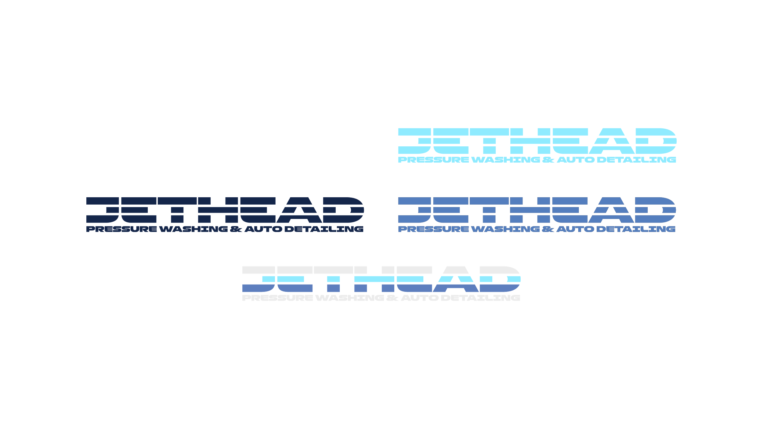 The Jethead logotype captures the essence of a high pressure water jet, the core tool used in pressure washing and auto detailing.